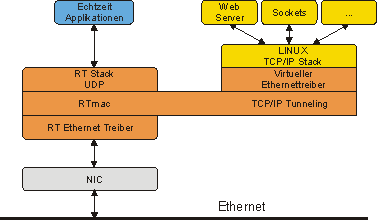 Alle bekannten Internet- bzw. Intranetanwendungen wie Telnet, FTP, HTTP können mit RTnet weiterbenutzt werden. RTnet ersetzt den TCP/IP Stack durch UDP/IP und tunnelt die bestehenden Protokolle über UDP. RTnet ist ein Master/Slave Protokoll und nutzt das Zeitmultiplex-Verfahren TDMA zur Übertragung. Hierdurch wird ein echtzeit­fähiges Verhalten von Ethernet erzielt, da Kollisionen, die das deterministische Zeitverhalten stören, vermieden werden. Primäres Anwendungsgebiet von RTnet ist die Ethernet basierte Vernetzung von Komponenten in der Automatisierungstechnik. Weitere Applikationen sind der Ersatz von konventionellen Feldbussen, verteilte Echtzeit Rechnersysteme und Audio/Video Streaming. Die aktuelle Version von RTnet steht bei SourceForge.net bereit.
